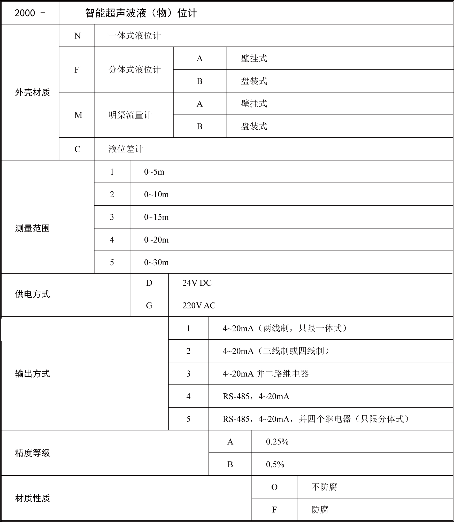 五、超聲波液位計(jì)選型表