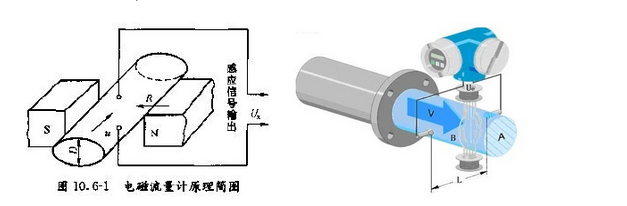 硫酸流量計(jì)的工作原理是基于法拉第電磁感應(yīng)定律。在電磁流量計(jì)中,測(cè)量管內(nèi)的導(dǎo)電介質(zhì)相當(dāng)于法拉第試驗(yàn)中的導(dǎo)電金屬桿,上下兩端的兩個(gè)電磁線圈產(chǎn)生恒定磁場(chǎng)。當(dāng)有導(dǎo)電介質(zhì)流過(guò)時(shí),則會(huì)產(chǎn)生感應(yīng)電壓。管道內(nèi)部的兩個(gè)電極測(cè)量產(chǎn)生的感應(yīng)電壓。測(cè)量管道通過(guò)不導(dǎo)電的內(nèi)襯(橡膠,特氟隆等)實(shí)現(xiàn)與流體和測(cè)量電極的電磁隔離,如圖所示。