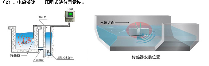 (2)、電磁流速——壓阻式液位示意圖: